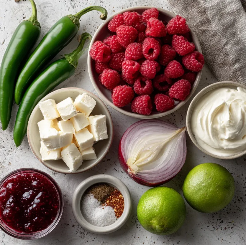 Begin by carefully slicing the jalapeños in half lengthwise. Use a spoon to scrape out the white membranes and seeds. Pro-Tip: Wear disposable gloves if you have sensitive skin, and always avoid touching your eyes! For a milder dip, remove all seeds and membranes. For more heat, leave some in. Roughly chop the jalapeños. If using fresh raspberries, give them a gentle rinse and pat dry.