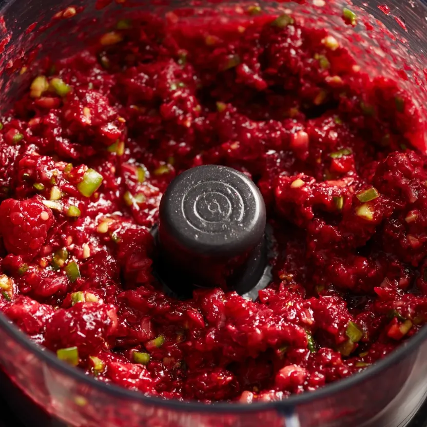In a food processor or high-powered blender, combine the raspberries, chopped jalapeños, red onion, lime juice, smoked paprika, garlic powder, and salt. Pulse 5-7 times until the mixture is finely chopped and saucy, but not completely pureed. You want a bit of texture. Let this mixture sit for 5 minutes to allow the flavors to meld.